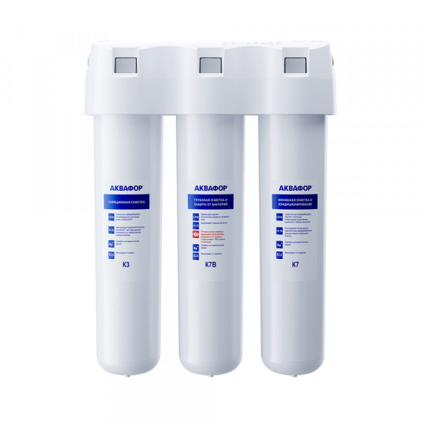 Обратноосмотические фильтры используются для абсолютной защиты от накипи, т.к. полностью устраняют соли жесткости из воды.нетЧисло ступеней очисткиКартриджи последовательно очищают воду и от видимых примесей, и от растворенных. Первый картридж задерживает более крупные частицы, а каждый последующий - более мелкие. Чем больше ступеней - тем лучше фильтр очистит воду: поймает более мелкие видимые частицы ржавчины, песка и ила, успеет захватить из воды максимум растворенных примесей - хлора, нитратов, тяжелых металлов и других.4МинерализацияПроисходит после финишной очистки воды. Необходима прежде всего в фильтре обратного осмоса, поскольку такой фильтр полностью устраняет из воды все примеси, в том числе минералы. Минералы добавляются в оптимальной концентрации - для пользы и привычного вкуса воды.нетПостфильтрацияФинальный этап очистки воды: картриджи постфильтрации удаляют самые мелкие механические частицы и кондиционируют воду, придавая ей более приятный вкус.нетНакопительная емкостьОбычно нужна в фильтрах обратного осмоса. Глубокая фильтрация требует времени. Чтобы Вам не приходилось ждать, пока вода наберется в чайник или кастрюлю, почти во всех моделях используется накопительный бак для чистой воды или другая емкость. В стандартном фильтре обратного осмоса под мойку воды в баке достаточно для семьи из 5-6 человек.нетФильтрующий модуль в комплектедаОтдельный краннетДавление в водопроводе не более, атмМаксимальное давление воды на входе в систему, при котором возможна стабильная работа фильтра.6,5Ширина, смОбратите внимание на габариты фильтра, и измерьте, сколько свободного пространства в предполагаемом месте установки.26,0Глубина, смОбратите внимание на габариты фильтра, и измерьте, сколько свободного пространства в предполагаемом месте установки.9,0Защита корпуса от гидроударовдаИсходная водаЖесткая вода – вода с избытком минеральных солей. От нее появляется накипь в чайнике, известковый налет на сантехнике и разводы на посуде. Мягкая вода – та, в которой мало минеральных солей. Нет накипи в чайнике и разводов на посуде. Фильтры для мутной воды и фильтры от ржавчины, как правило, имеют несколько стадий очистки и дополнительный полипропиленовый картридж. Он задерживает механические частицы ила, песка и ржавчины и защищает картриджи более глубокой очистки.мягкаяУстраняет мутностьМутность водопроводной воды может говорить о том, что в ней много мелких механических частиц. Важно, чтобы в фильтре был установлен дополнительные картридж механической предфильтрации (полипропиленовый) - он продлит жизнь остальным картриджам более тонкой очистки.даУстраняет ржавчину, бурый осадокЛюбой фильтр под мойку удалит из воды крупные и мелкие частицы ржавчины. Некоторые фильтры имеют повышенный ресурс по железу: они дольше служат в такой воде, поскольку лучше подходят для удаления из воды железа и механических частиц ржавчины.даЗащита от бактерийВсе проточные фильтры в той или иной степени защищают от бактерий. Например, добавление серебра препятствует их размножению. Это стандартная степень защиты. Если в семье есть дети, пожилые люди или аллергики, воду рекомендуется обеззараживать, то есть полностью удалять микроорганизмы. Повышенную защиту от бактерий дают фильтры с половолоконной мембраной. Это пучок труб