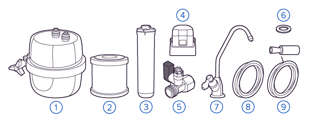 В фильтрах обратного осмоса установлена мембрана, которая не пропускает ничего, кроме воды (вода проходит через неё под давлением). Такой фильтр делает безопасной водопроводную воду любого качества, удаляя все вредные примеси: бактерии, вирусы, хлор, тяжелые металлы, нитраты, фармацевтику. Обратноосмотические фильтры используются для абсолютной защиты от накипи, т.к. полностью устраняют соли жесткости из воды. |