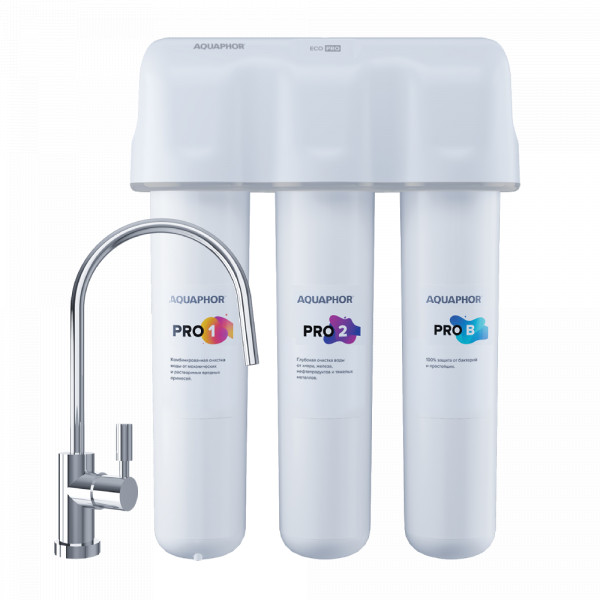 Обратноосмотические фильтры используются для абсолютной защиты от накипи, т.к. полностью устраняют соли жесткости из воды.нетМинерализацияПроисходит после финишной очистки воды. Необходима прежде всего в фильтре обратного осмоса, поскольку такой фильтр полностью устраняет из воды все примеси, в том числе минералы. Минералы добавляются в оптимальной концентрации - для пользы и привычного вкуса воды.нетПостфильтрацияФинальный этап очистки воды: картриджи постфильтрации удаляют самые мелкие механические частицы и кондиционируют воду, придавая ей более приятный вкус.нетНакопительная емкостьОбычно нужна в фильтрах обратного осмоса. Глубокая фильтрация требует времени. Чтобы Вам не приходилось ждать, пока вода наберется в чайник или кастрюлю, почти во всех моделях используется накопительный бак для чистой воды или другая емкость. В стандартном фильтре обратного осмоса под мойку воды в баке достаточно для семьи из 5-6 человек.нетФильтрующий модуль в комплектедаОтдельный крандаДавление в водопроводе не более, атмМаксимальное давление воды на входе в систему, при котором возможна стабильная работа фильтра.6,5Защита корпуса от гидроударовдаИсходная водаЖесткая вода – вода с избытком минеральных солей. От нее появляется накипь в чайнике, известковый налет на сантехнике и разводы на посуде. Мягкая вода – та, в которой мало минеральных солей. Нет накипи в чайнике и разводов на посуде. Фильтры для мутной воды и фильтры от ржавчины, как правило, имеют несколько стадий очистки и дополнительный полипропиленовый картридж. Он задерживает механические частицы ила, песка и ржавчины и защищает картриджи более глубокой очистки.мягкаяУстраняет мутностьМутность водопроводной воды может говорить о том, что в ней много мелких механических частиц. Важно, чтобы в фильтре был установлен дополнительные картридж механической предфильтрации (полипропиленовый) - он продлит жизнь остальным картриджам более тонкой очистки.даУстраняет ржавчину, бурый осадокЛюбой фильтр под мойку удалит из воды крупные и мелкие частицы ржавчины. Некоторые фильтры имеют повышенный ресурс по железу: они дольше служат в такой воде, поскольку лучше подходят для удаления из воды железа и механических частиц ржавчины.даЗащита от бактерийВсе проточные фильтры в той или иной степени защищают от бактерий. Например, добавление серебра препятствует их размножению. Это стандартная степень защиты. Если в семье есть дети, пожилые люди или аллергики, воду рекомендуется обеззараживать, то есть полностью удалять микроорганизмы. Повышенную защиту от бактерий дают фильтры с половолоконной мембраной. Это пучок трубок с порами размером 0,1 микрон (что в 1000 раз тоньше человеческого волоса) - бактерии и яйца паразитов “застревают”, как в “сите”. Полученную воду не придется кипятить и можно использовать для приготовления детского питания. Абсолютную защиту обеспечат фильтры обратного осмоса, которые не пропускают через обратноосмотическую мембрану ничего, кроме воды.стандартнаяПоловолоконная мембранаЭто пучок трубок с порами размером 0,1 микрон (что в 1000 раз тоньше человеческого волоса). Бактерии и яйца паразитов “застревают”, как в “сите”. Полученную воду не придется кипятить и можно использовать для приготовления детского питания.даУдобно менять модулида