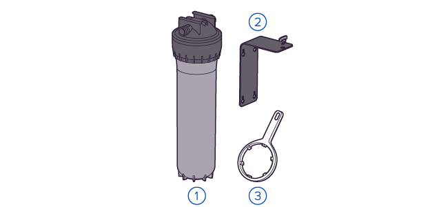 • Корпус магистрального фильтра из армированного пластика с удобным креплением. Подходит только для холодной воды.