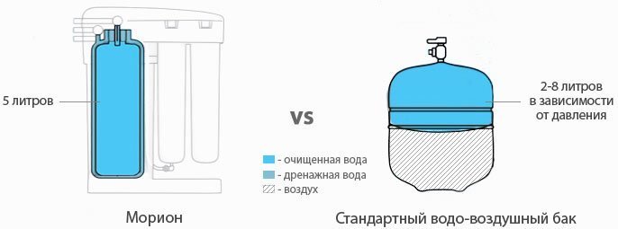 В стандартном фильтре обратного осмоса под мойку воды в баке достаточно для семьи из 5-6 человек.